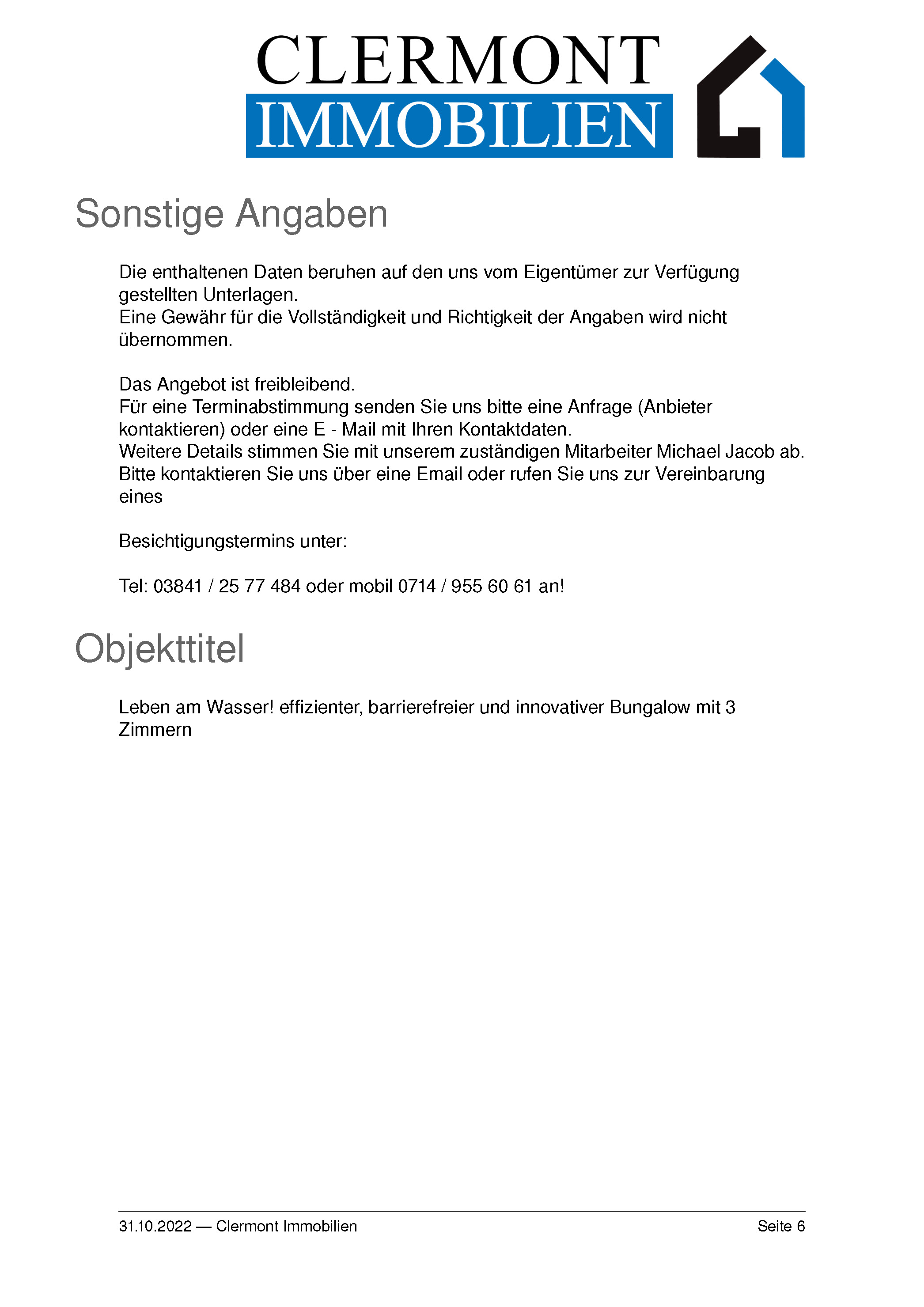 Der hier angebotene Bungalow mit 137,82 m² Wohnfläche verteilt auf drei Zimmer auf einer ca. 938 m² Grundstücksfläche und unterteilt sich wie folgt: