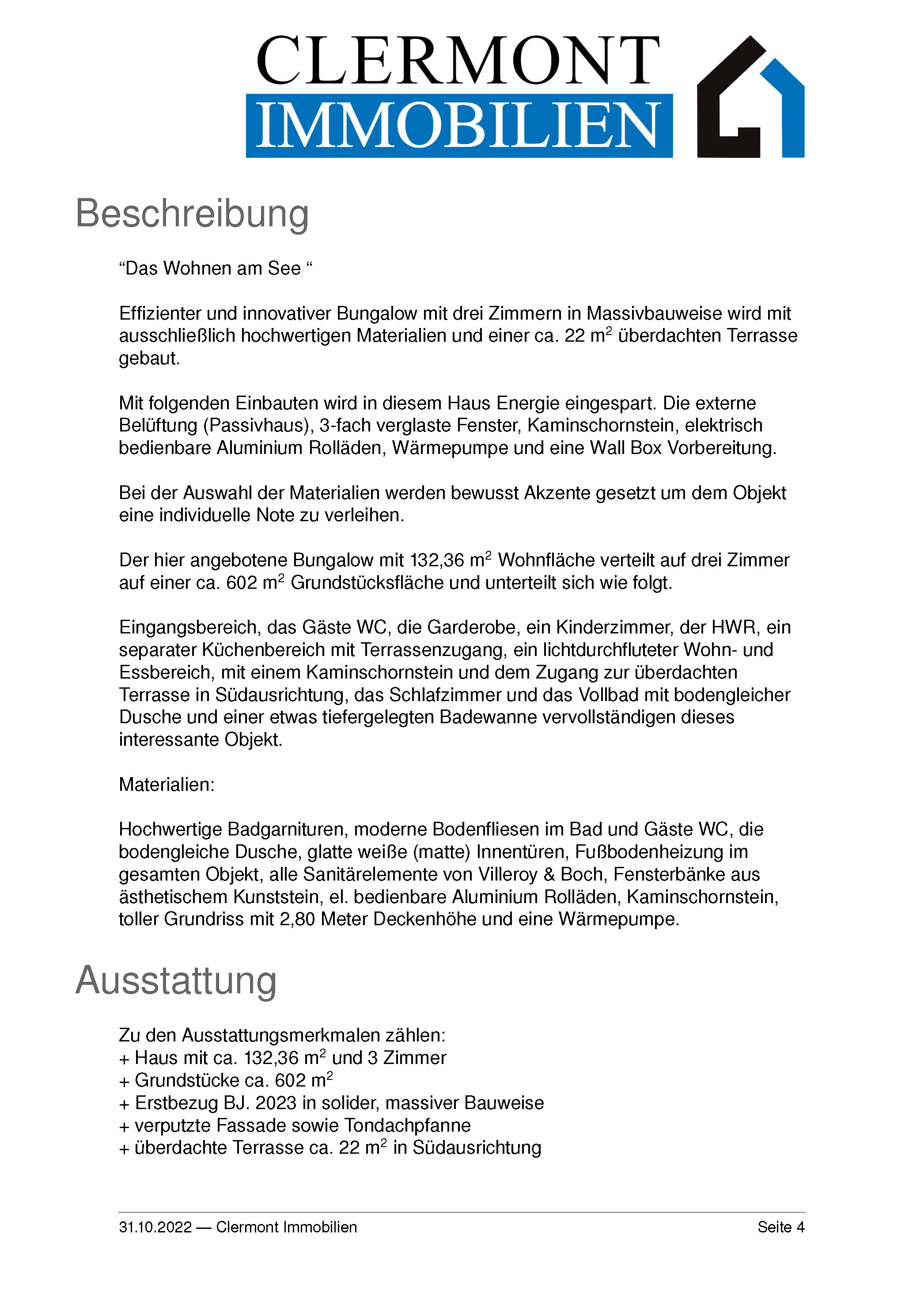 Der hier angebotene Bungalow mit 132,36 m² Wohnfläche verteilt auf drei Zimmer auf einer ca. 602 m² Grundstücksfläche und unterteilt sich wie folgt: